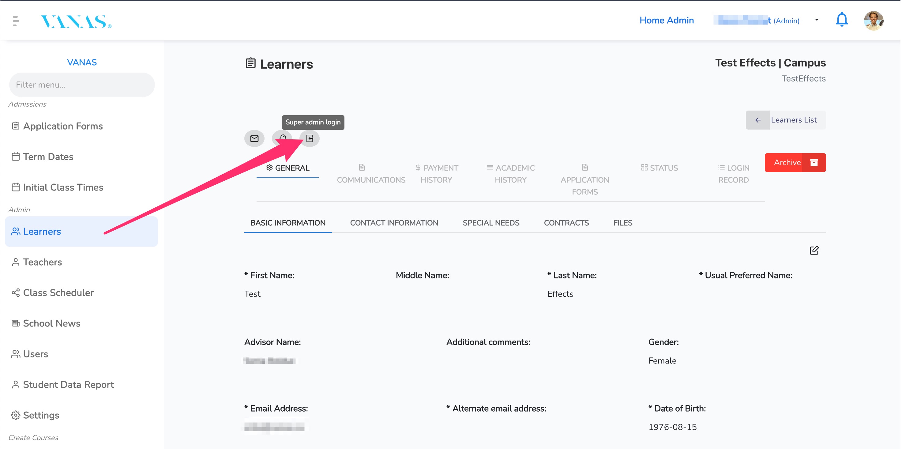 VANAS LMS – Administrators and Teachers